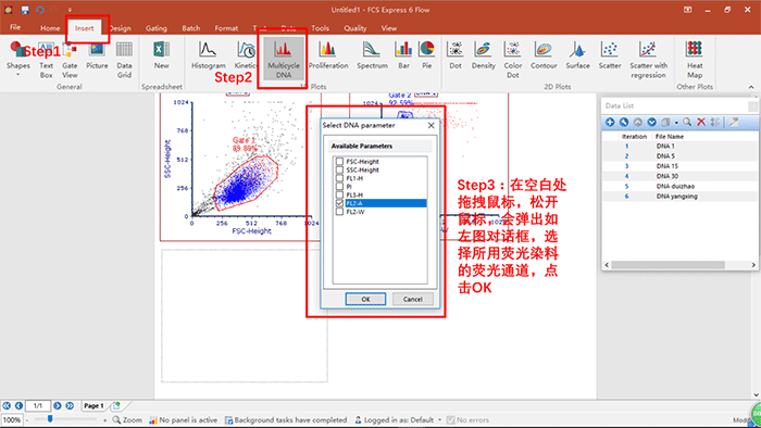 ? 演示內容:細胞周期數據的分析,關于細胞周期各個參數的調用,統計學圖表的建立