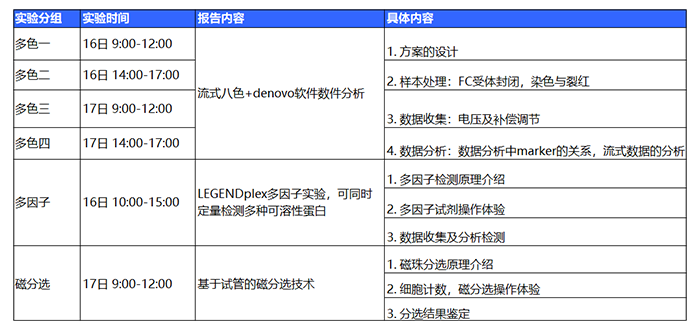 *注:請注意多色一、二、三、四為同一實驗,請根據自己的時間報名,請勿重復報名。上機實訓多色實驗擬招40人,多因子實驗與磁分選實驗分別擬招10人。