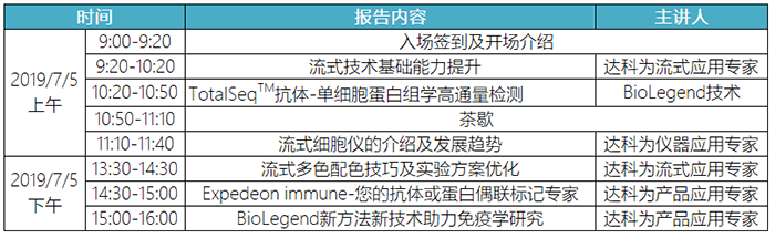 達科為生物公司作為國內一流的生物試劑供應商,多年來在全國各地免費舉辦了百余場流式培訓班,取得了熱烈的反響和良好的反饋。此次流式培訓班將于2019年7月5日-7月7日舉辦。