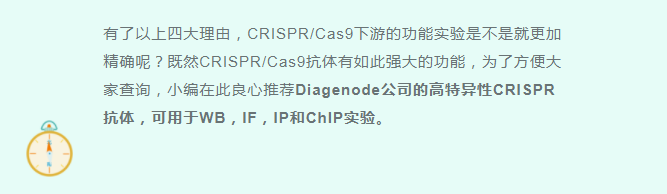 Diagenode公司2003年成立于比利時,是世界上生產表觀遺傳學產品的知名公司。表觀遺傳學及二代、三代測序樣本前處理專家,是表觀遺傳學、生物樣本制備和診斷的完整表觀遺傳學解決方案的領先供應商。Diagenode提供大量高特異性的CRISPR抗體,并且經過WB,IF,IP和ChIP驗證,是市面上CRISPR抗體的供應商。