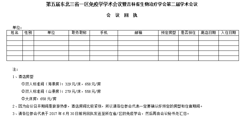 四、請(qǐng)各位參會(huì)代表于2017年6月30日前將回執(zhí)暨論文摘要表發(fā)送至學(xué)會(huì)
